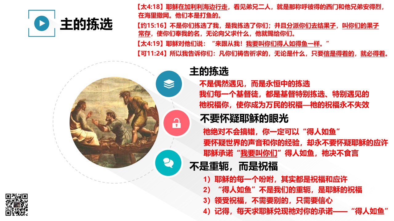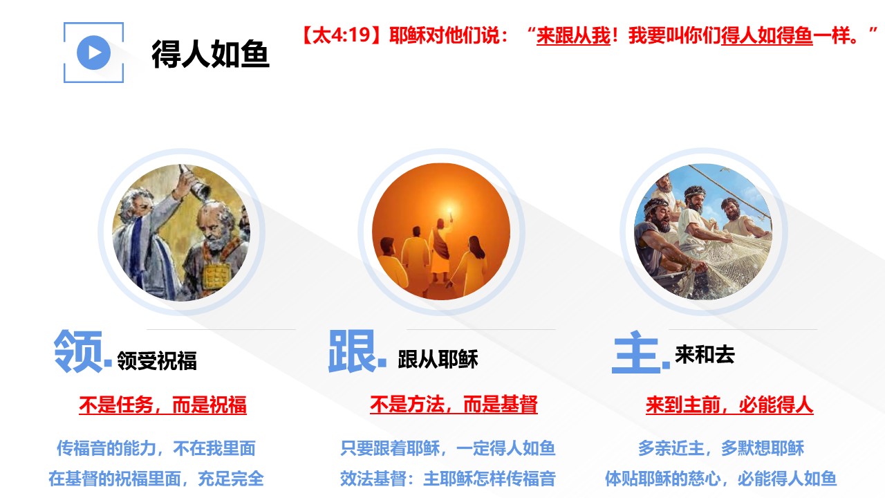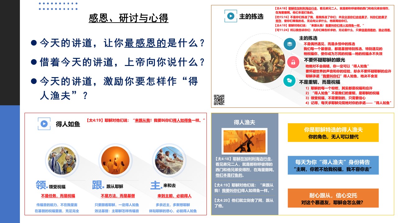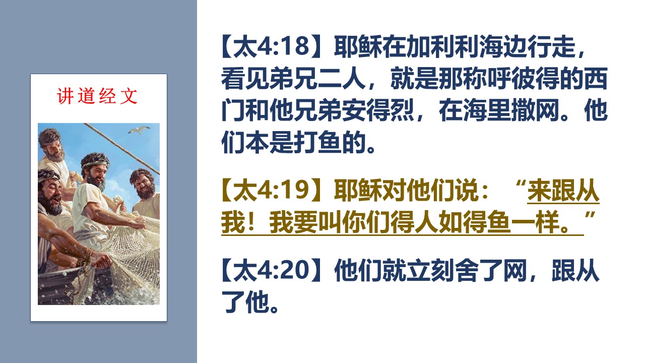 主耶稣呼召门徒时,应许我们“得人如鱼”。
