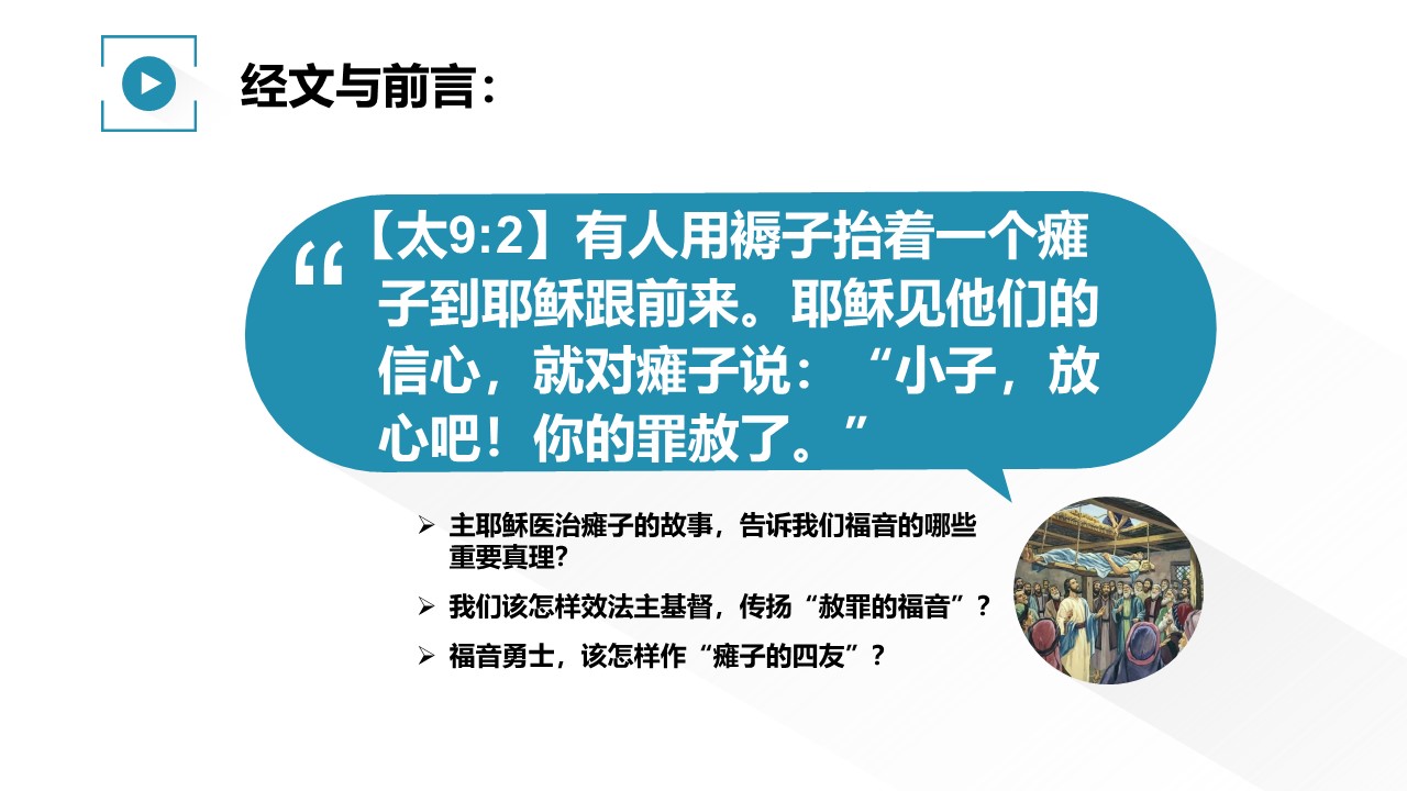 祂医治瘫子时所做的,显明了哪些福音的特征?