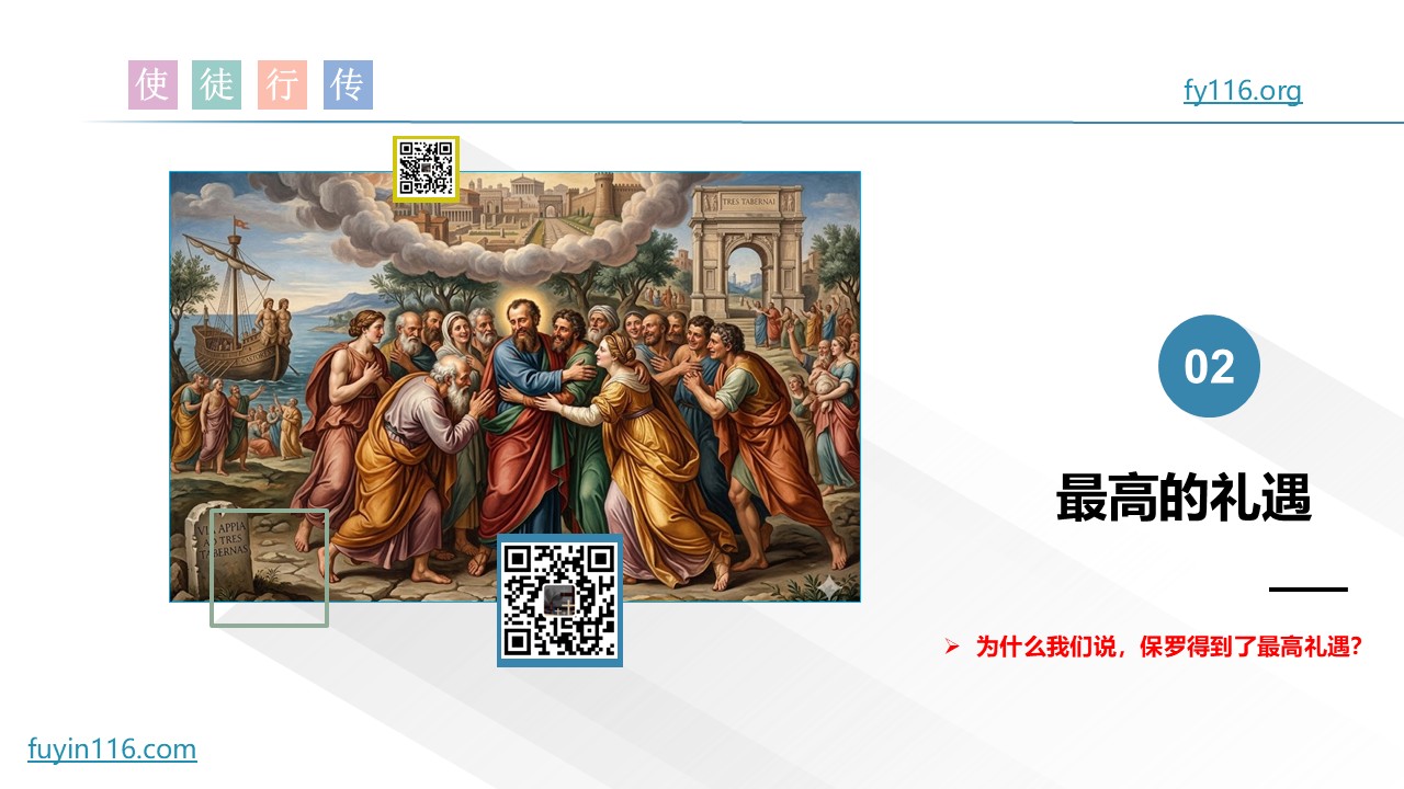 《使徒行传》最后一章,保罗保罗终于来到了罗马,有弟兄来接待他。