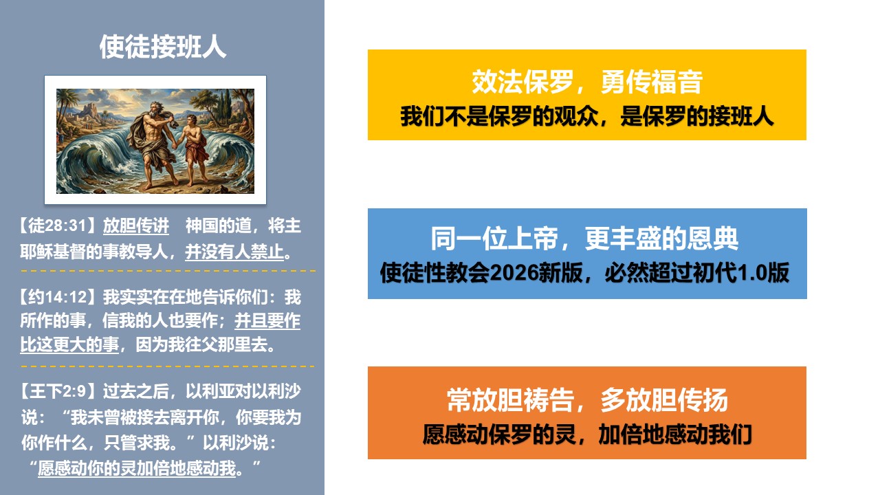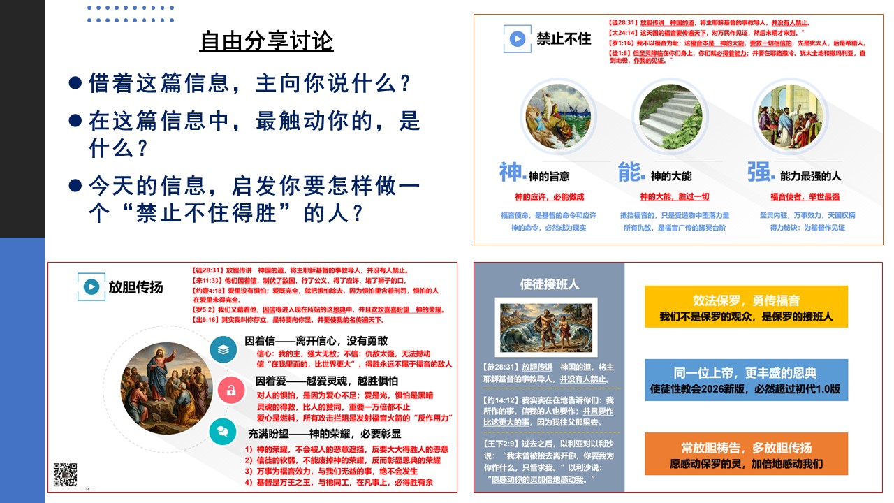 让我们更认识福音的大能,更注重与主同行、与神相交的生命建造,更勇敢为主作见证。