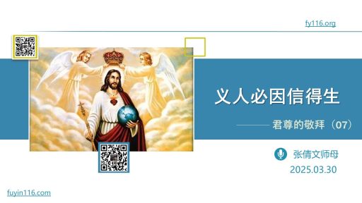 使徒保罗说“你们不在律法之下,乃在恩典之下”。 这节经文,其意涵到底是什么? 上帝赐下律法,其目的到底是什么? 福音与律法的本质区别,到底是什么? 愿上帝的祝福借着祂的真道,更多地临到每一个认真聆听的灵魂。 欢迎您收听: 《再思不在律法之下》 本文链接(若有朋友在微信里打不开本文,可以把下面的链接发给他,在浏览器里打开): https://fy116.org/fx2f 您也可以点击下面的链接,重温之前的信息: 《君尊的敬拜系列》 ⚠️⚠️⚠️ 注意 ⚠️⚠️⚠️ 鼓励大家在手机浏览器或电脑浏览器…
